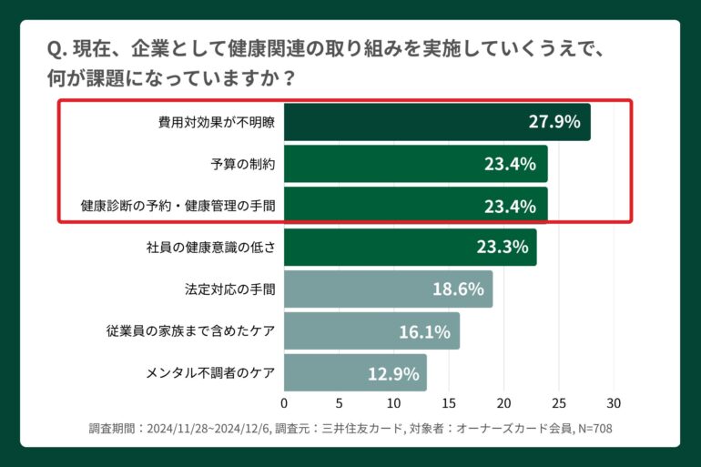 このように、三井住友カードとヘルスケアテクノロジーズが提供する「CareCon」パッケージは、中小企業にとって非常に有益な資源となる可能性があります。経営者自身がこのパッケージの特徴と効果を理解し、適切に活用することで、従業員の健康を守り、企業全体の持続可能な成長を目指す道筋を付けることができるでしょう。健康経営は今後ますます重要なテーマとなるため、早期の導入と具体的な施策の実施をお勧めいたします。